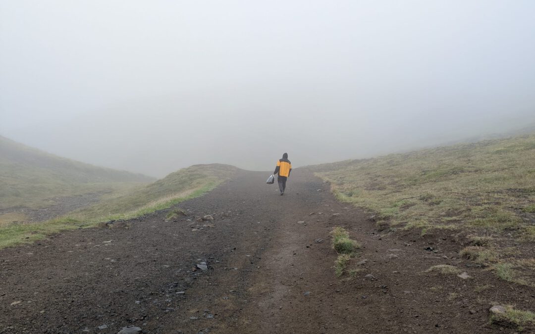 The alarm clock rouses us from our tents at a time when many others at the campsite are still fast asleep. Getting up is particularly easy for us today, however, because we’re incredibly excited about what awaits us. Thick fog hangs in the mountains, and a fine drizzle accompanies us on our three-kilometer hike uphill, during which we’re once again incredibly grateful for our rain gear. The hike is challenging; our legs grow heavy, and our breath steams in the cold air amidst the quiet, gray beauty that surrounds us. But by the time we finally reach our destination, the effort is already forgotten: before us lies the hot, steaming river, which, in this misty landscape, seems mysterious and, like everything in Iceland, a little magical. Only six other early risers are here with us. Since the river landscape is so expansive, everyone has a small spring all to themselves. We slip into the water, let the warmth flow through our limbs, and watch the fog as it drifts between the mountains.